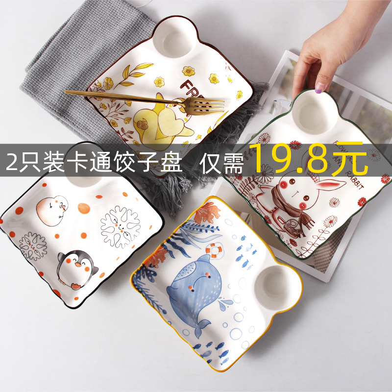 日式网红家用陶瓷饺子盘带醋碟ins风卡通分割盘创意早餐盘寿司盘热门设计联盟服务商