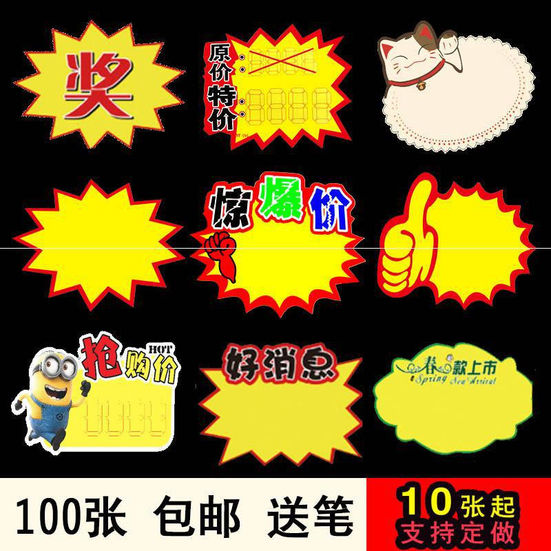 标签纸水果店商品超市价格标签宣传单pop货架标价纸100张大号标牌热门设计联盟服务商