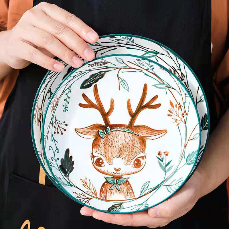 2/4个装家用陶瓷菜盘子碟子深盘卡通创意果盘吃饭盘子汤盘餐具热门设计联盟服务商