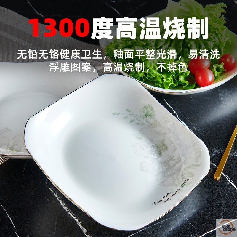 天顺陶瓷盘子菜盘家用金边轻奢钻石北欧风纯色创意高级感加深设计